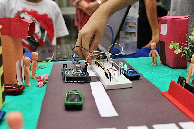 Para desenvolver os projetos práticos, os alunos utilizaram a mesma tecnologia “open source” empregada pelo método TRON. Por meio dessa tecnologia nomeada “arduíno”, os alunos desenvolveram um semáforo de trânsito em uma maquete e carros autônomos seguidores de linha.